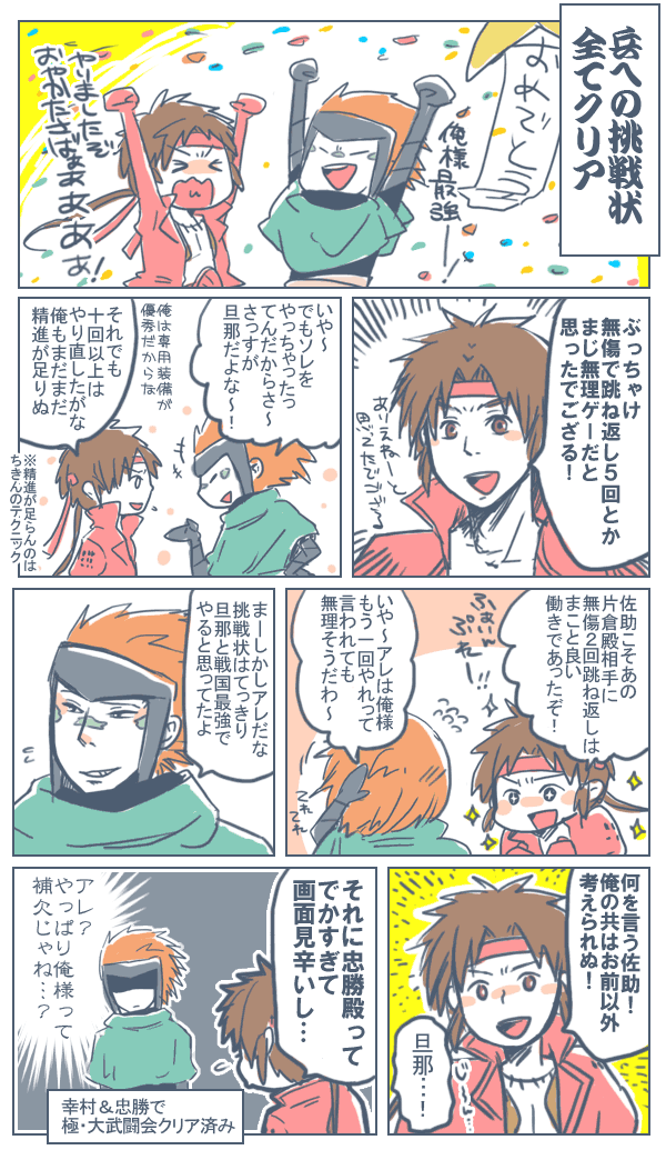ちなみに、途中まではコンボ稼ぎ役:真田、跳ね返し役:佐助で