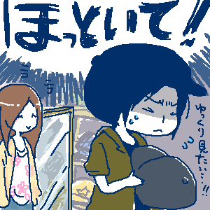 さりげなく向こう側向いて、遠まわしの拒否を示してみたものの通じず。