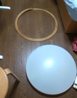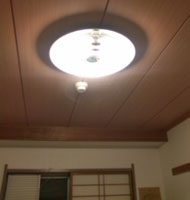 写真だと分かりにくいですが、電気の笠が取れて落ちてきたらしい。