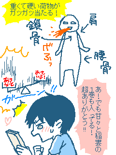 酒と大判コミックス11巻+αを持って帰ったら、体の出っ張ってる色んなとこが