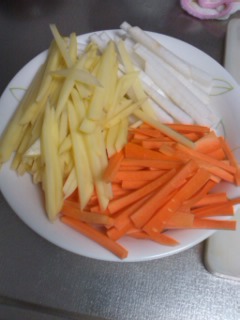 大根と人参がそろそろヤベー感じだったので、キンピラにしようと思い、