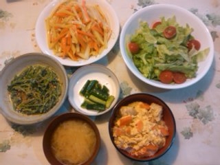 メイン親子丼のつもりで、もうサラダも浅漬けも作っちゃってる状態。