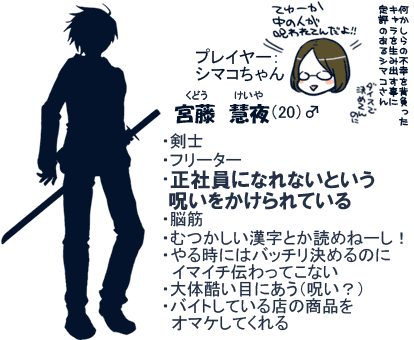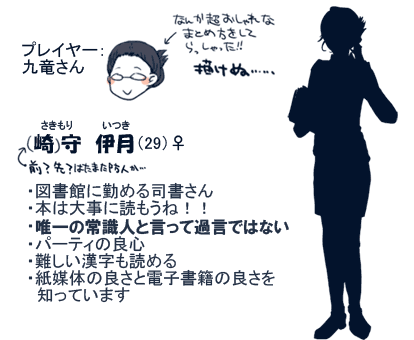 今回、名前が全員中二難しいので、あやふやだったり抜けてたりします…。