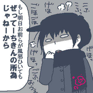 その後、日記とか見てたら一人風邪ひいた人間が出てきて冷や汗をかいてますが。