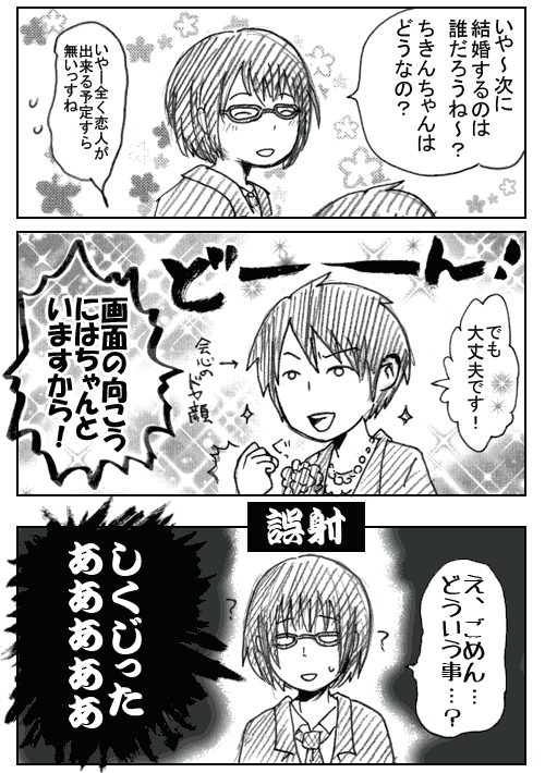…が、必殺「二次元には恋人が居るんで問題ないです」