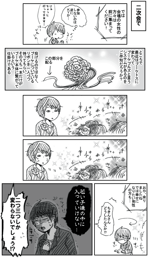 あんなキラキラしてるお嬢さん方を差し置いて、万が一ちきんがブーケなんか