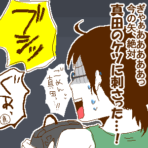 あらぬトコロ(顔とかな)に矢が刺さると真田の「ぐはっ」が悲痛に聞こえてきます…。