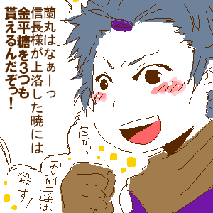 「オイイイイッ!佐助!金平糖三つとは何事だ!?織田家の財政はそこまでひっ迫しておるのか!?